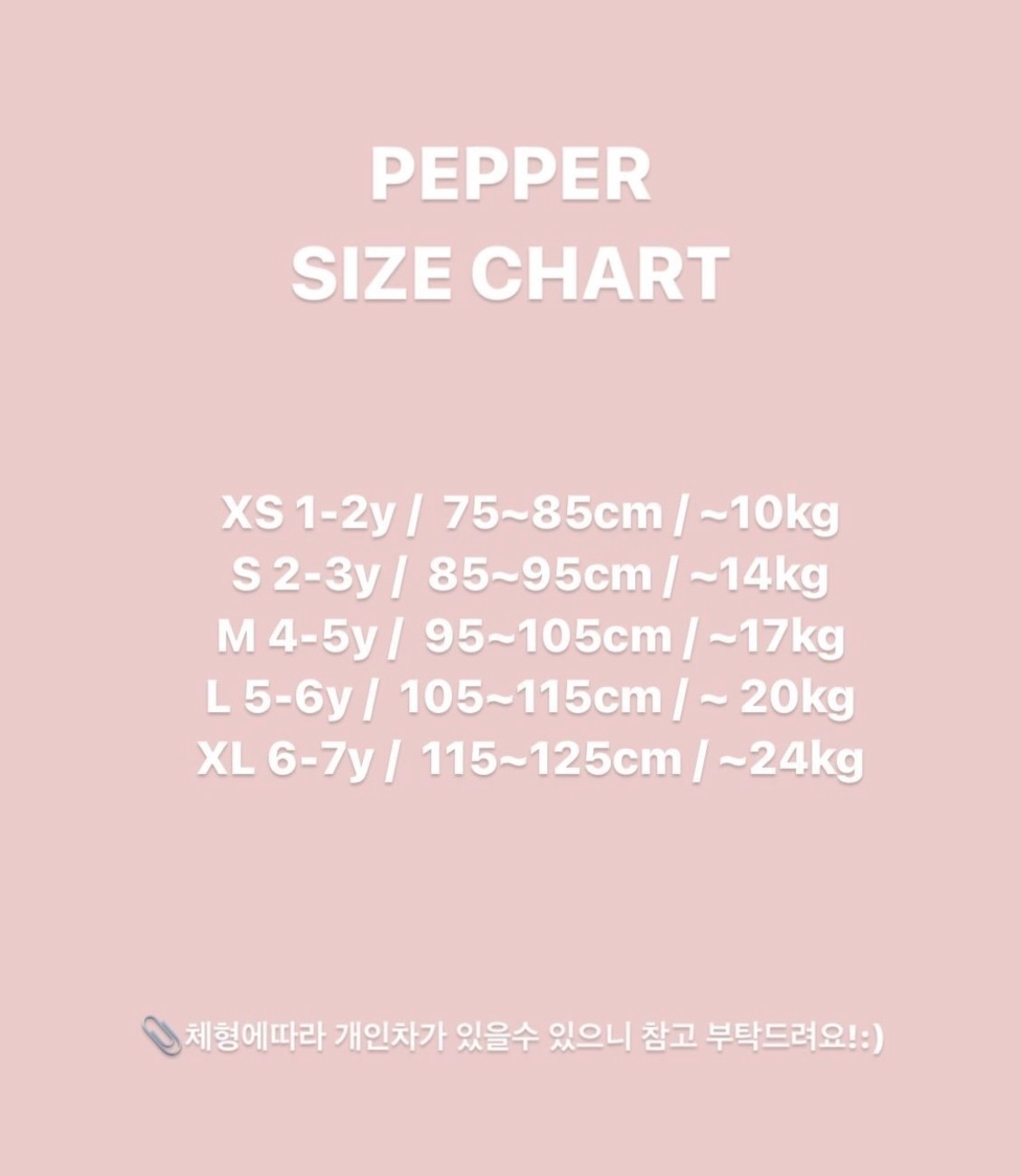 XS(1~2y) / S(2~3y) / M(4~5y) / L(5~6y) / XL(6~7y)